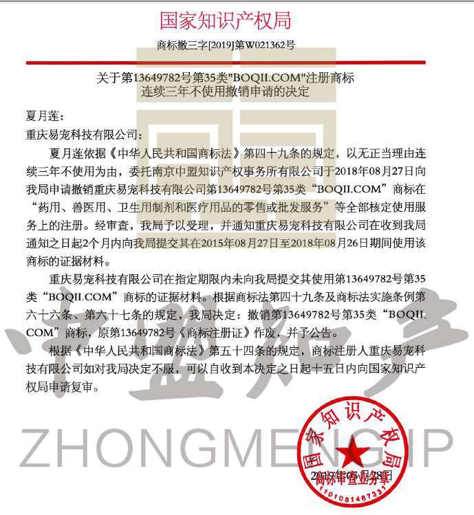 商标案例|中盟助力成功拿回被抢注的“boqii.com”商标