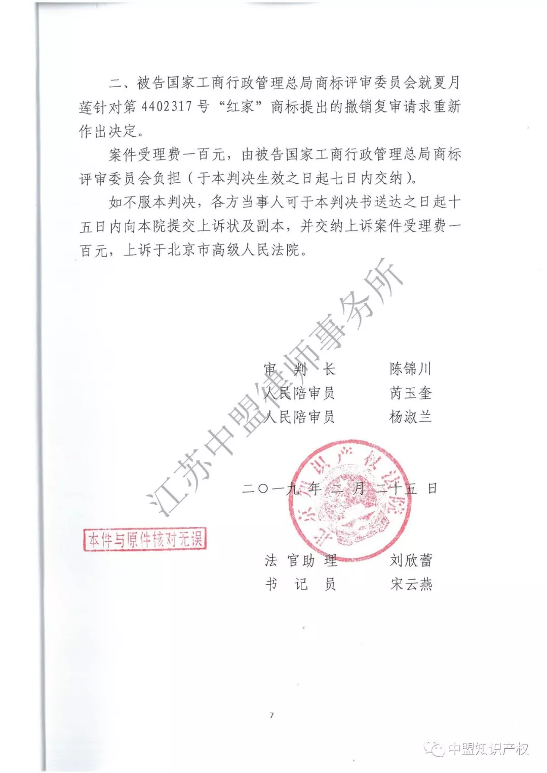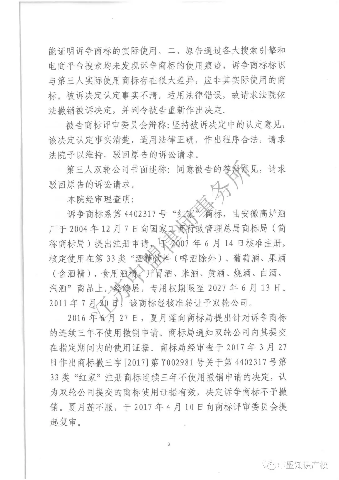 若不进一步推进撤销程序,诉争商标就不会被撤销,将大幅降低当事人“家之红”商标成功注册的成功率,加之我所认为商评委对证据的审查存在一定错误,因此当事人在我所的建议下,继续针对诉争商标委托我所向北京知识产权法院提起行政诉讼程序。